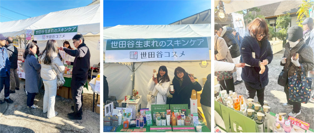 2025年12月15日(月)・16日(火)の二日間、東京都世田谷区で開催された「世田谷ボロ市」に今年も出店いたしました。会場は、ボロ市通りの中心に位置する代官屋敷内敷駐車場にブースを構え、世田谷コスメ(スキンケアブランド)やグイグイリフト(耳つぼシール)などの自社製品を販売しました。